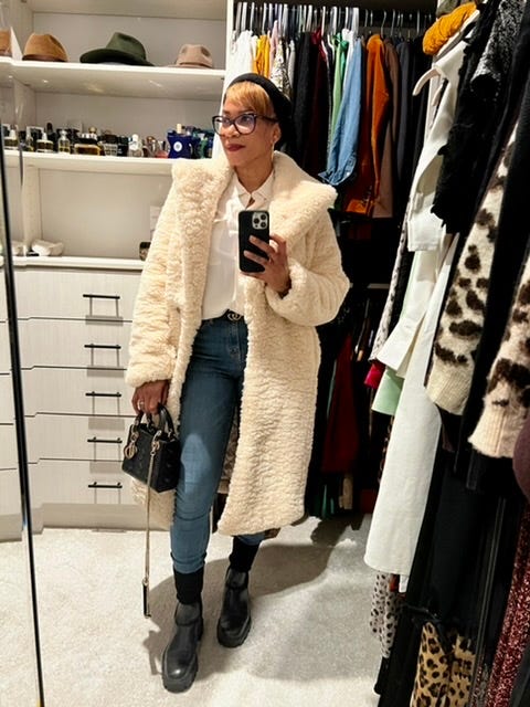 Secondly, the sherpa coat, πOMG! I got this cream bear coat from Banana Republic for Christmas, and it's chic, super warm, and a major statement piece. At the time of purchase, this coat was $400, but I think it's currently on sale for $189 π if they have any left in stock. I have reached for this coat considerably, so the cost per wear (the cost of the coat divided by the number of times I wear it) tells me this was a smart purchase. Of course, it would have been better to get the sale price, but I was lazy to take it back to the store for the price adjustment; I know, sad! But anyway, this coat is incredible and elevates any outfit; it also comes in a camel color, which is more practical for some.
